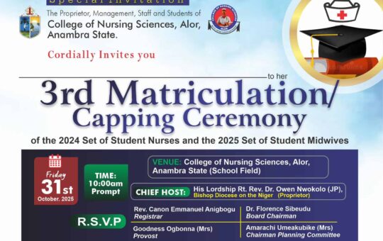 The College of Nursing Sciences, Alor (CONSALOR), has officially announced the date for its 2025 Matriculation and Capping Ceremony —...