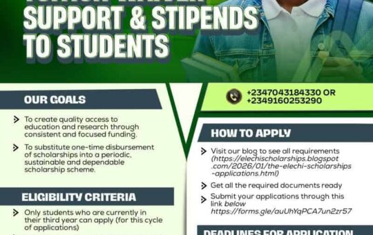 The Elechi Scholarship Scheme 2026 has officially been announced, opening a new funding opportunity for 300-level students of the University...