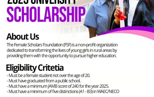 The Female Scholars Foundation (FSF) has officially opened applications for its 2025 University Scholarship Programme — and it’s exclusively for...