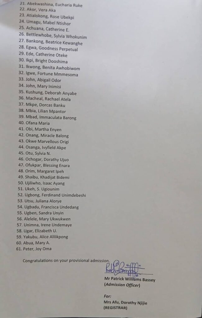 The College of Nursing Sciences, Obudu congratulated all successful candidates and expressed excitement about welcoming the next generation of skilled midwives.