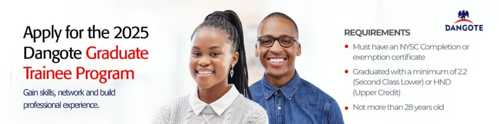 Don’t miss your chance. Head to the Dangote Group 2025 Graduate Trainee Programme application form and start your journey today.