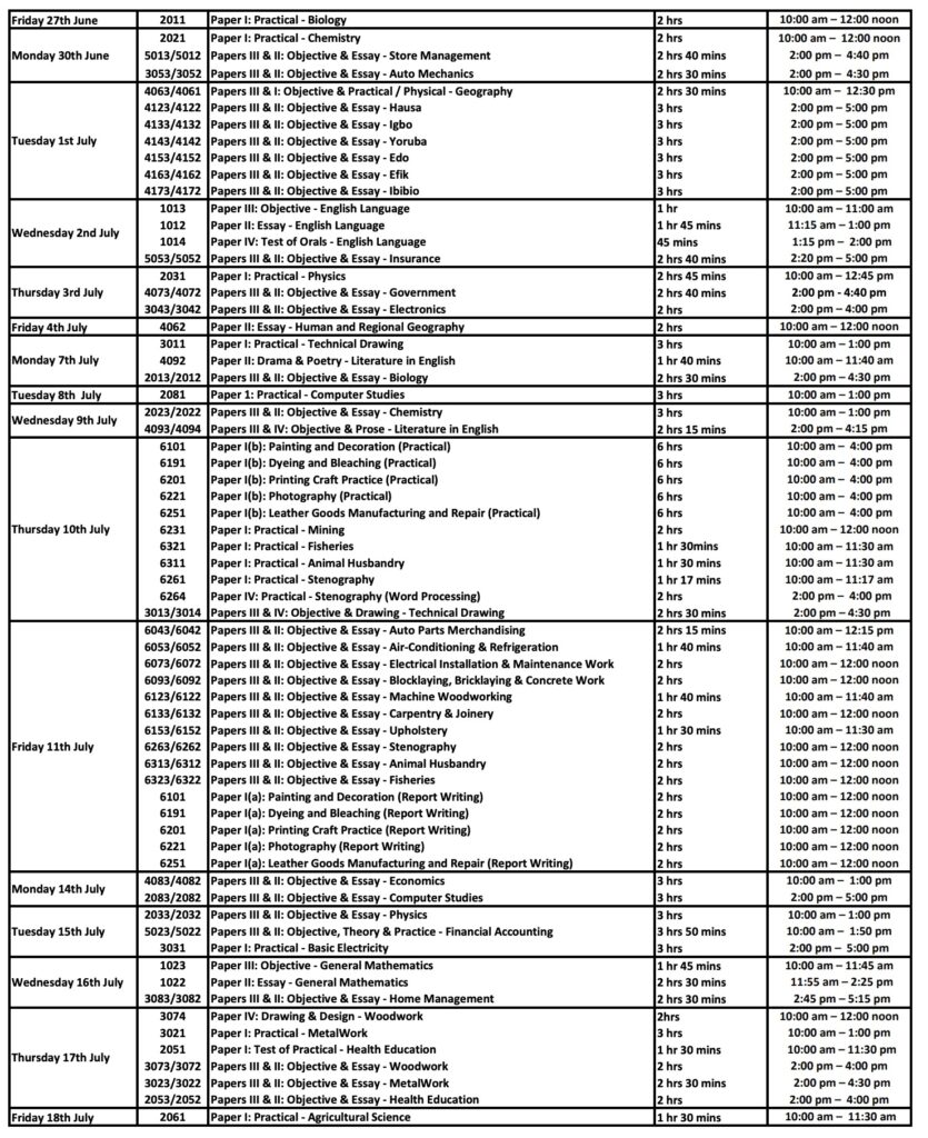 Quick Tip: This timetable is crucial for SS3 students sitting for NECO this year. Bookmark it, print it, and plan your revision early!