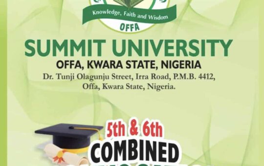 Summit University, Offa (SUNO) has officially released the full programme for its 5th and 6th combined convocation ceremonies, scheduled to...